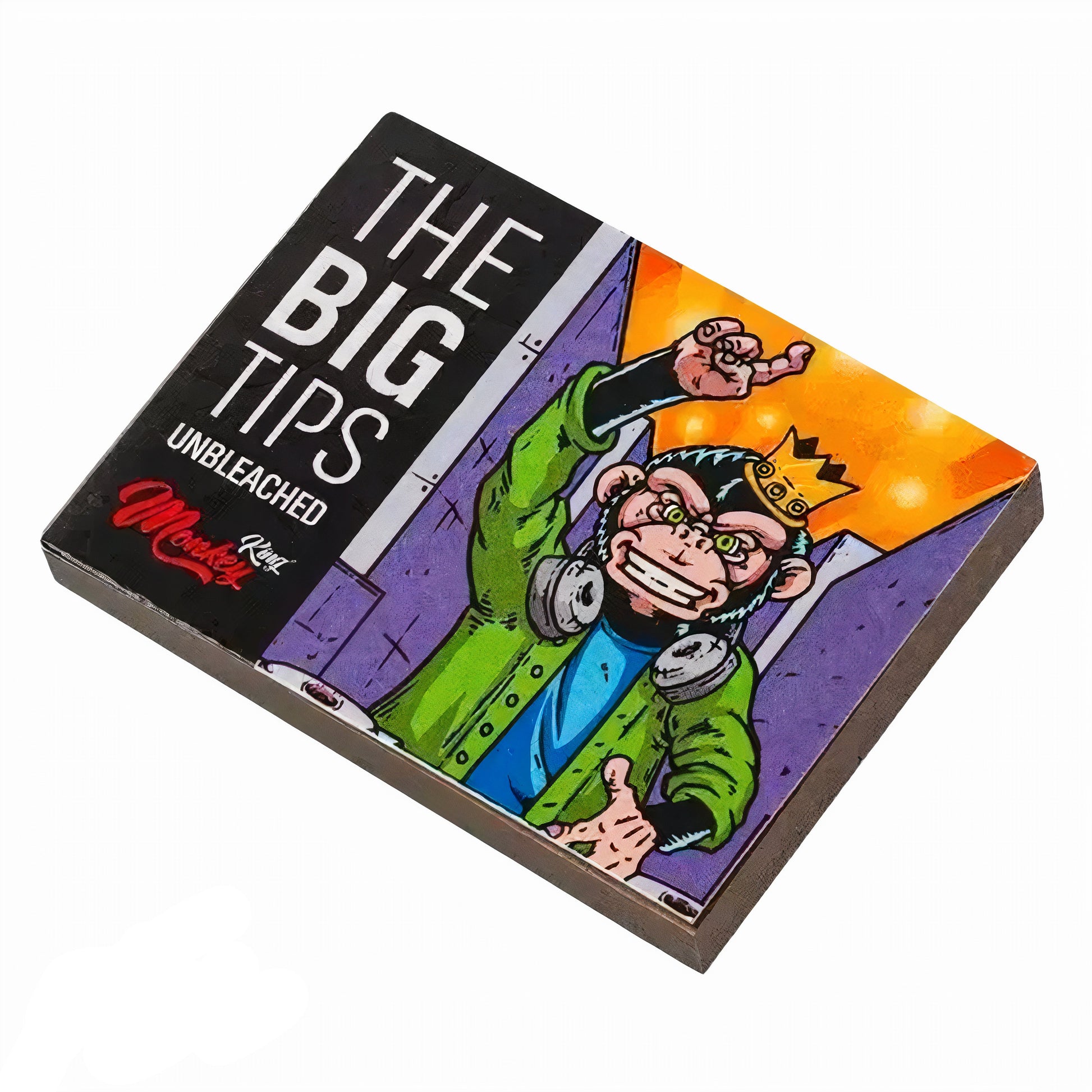 Os filtros grandes da Monkey King, são feitos de cartão e têm dimensões de 40 x 54 milímetros, resultando num filtro maior e mais filtrador em relação ás outras opções no mercado. São ideais se já estás farto de queimar o dedo quando a cinza chega ao filtro. Cada um dos livrinhos contém 50 filtros, e contém seis designs exclusivo dos designers da Monkey King. Completas a coleção?